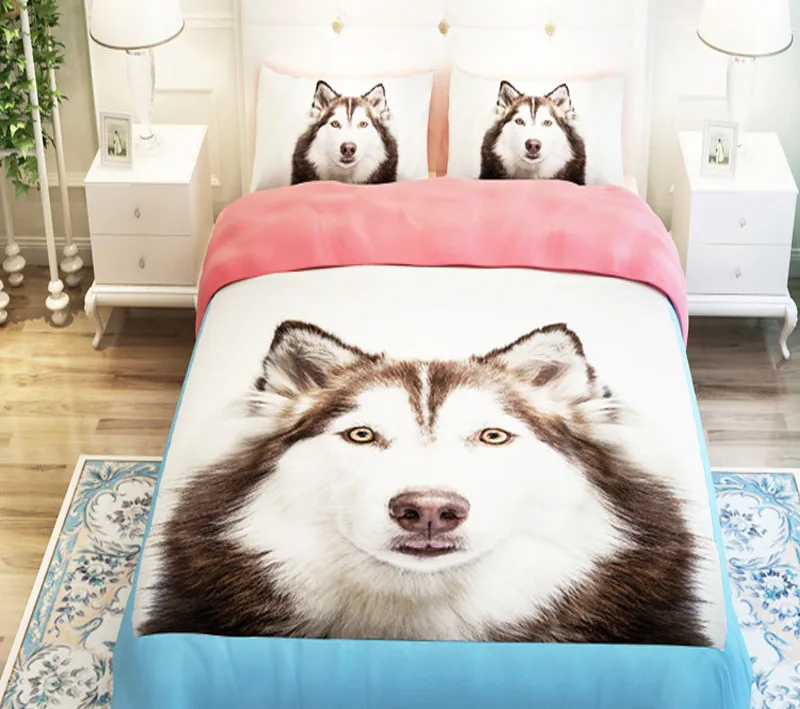3D Oil Siberian Husky Dog Bedding Sets,3/4pc duvet cover without filler,100% Polyester Wolf Wolves Duvet Cover King Queen Twin